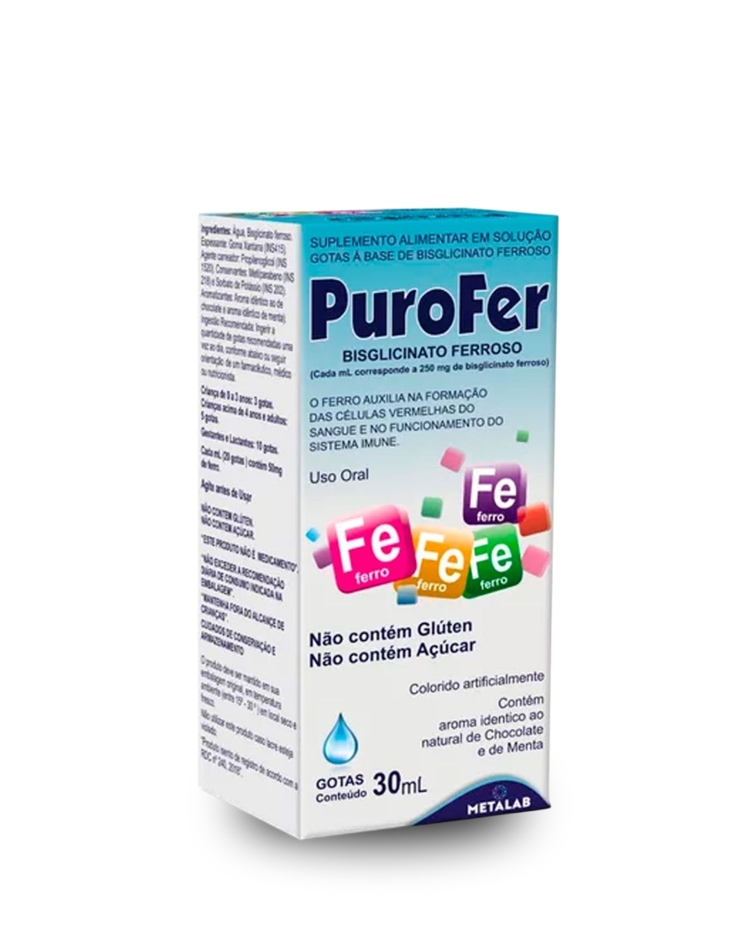 O Purofer 250mg em Gotas da Metalab é a solução ideal para garantir que crianças e pacientes com dificuldade de deglutição recebam o aporte necessário de Ferro. O Ferro é vital para o desenvolvimento saudável, pois participa da formação das células vermelhas do sangue.