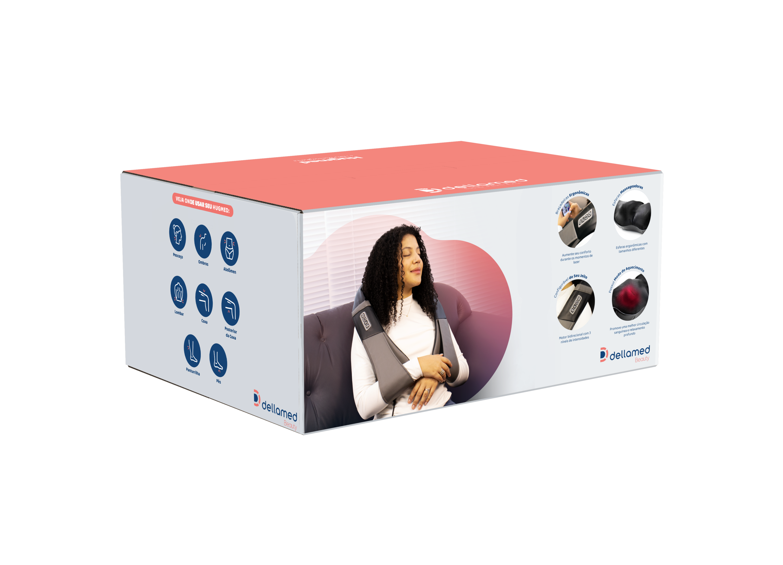 4. Uso Prático: Controle simples de intensidade e, geralmente, função de aquecimento (verificar especificações da Dellamed) para potencializar o relaxamento.